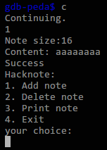 在那之後我們隨意 malloc 一個空間,這樣 selected_song 就又會指向 heap 區段的地址,一樣扣除最後 1.5 bytes 就可以得到 heap base address