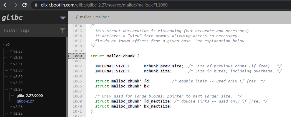 - fd_nextsize : point to next large chunk(僅限large chunk有,不包含 bin )