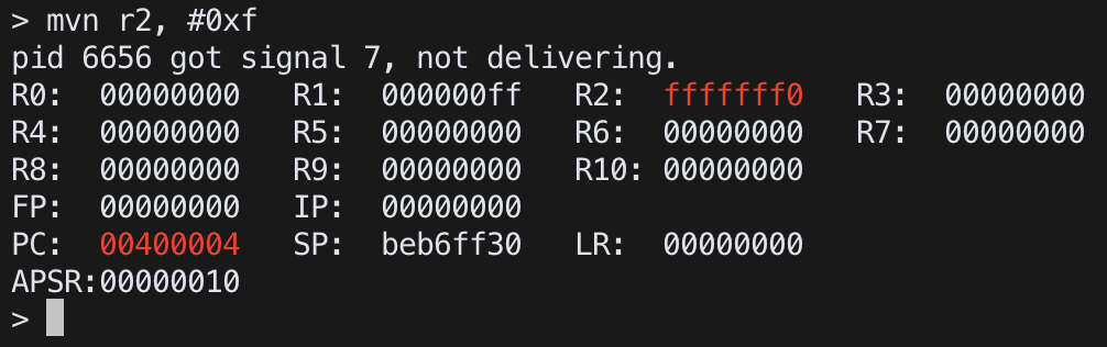 mvn r2,#0xf = mov r2, (0xffffffff - 0xf)
